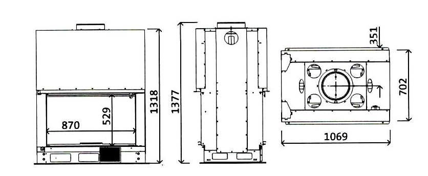 Топка Atraflam 16/9 900 DF способна обогреть большое помещение. Благодаря двум стеклам, размещенным с обеих сторон, модель идеально подходит для центрально расположенных каминов. Решётка для дров входит в комплект.