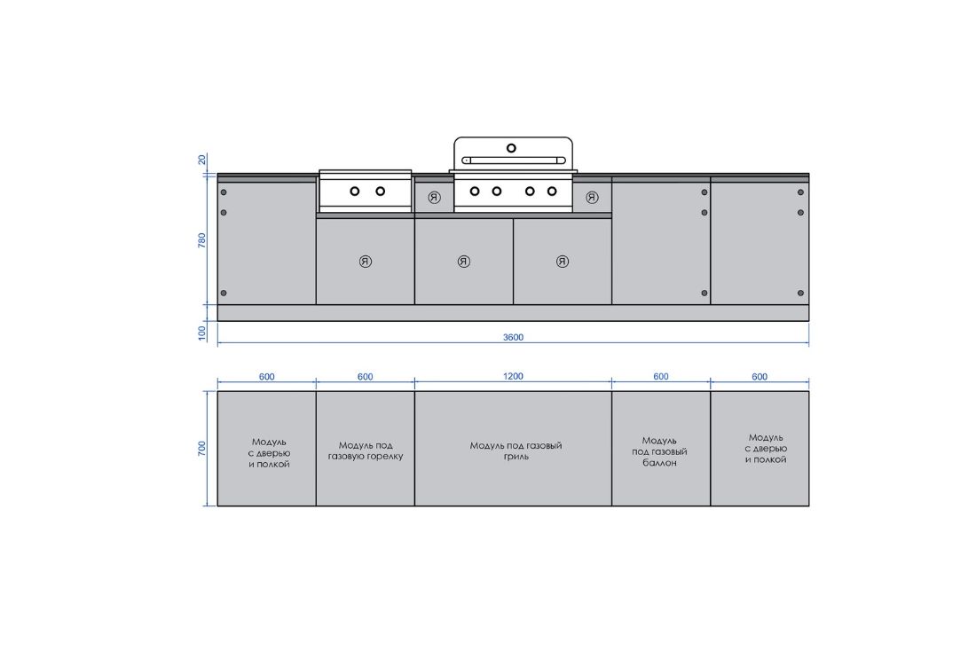 - Модуль под газовую горелку 600 мм.