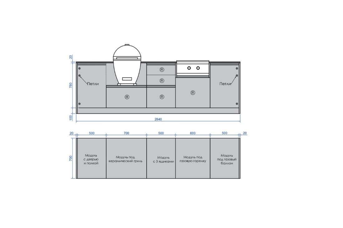 - Модуль под керамический гриль 700 мм