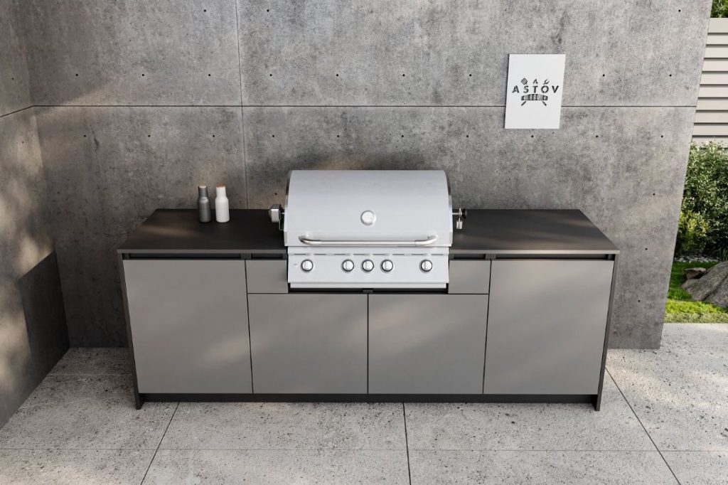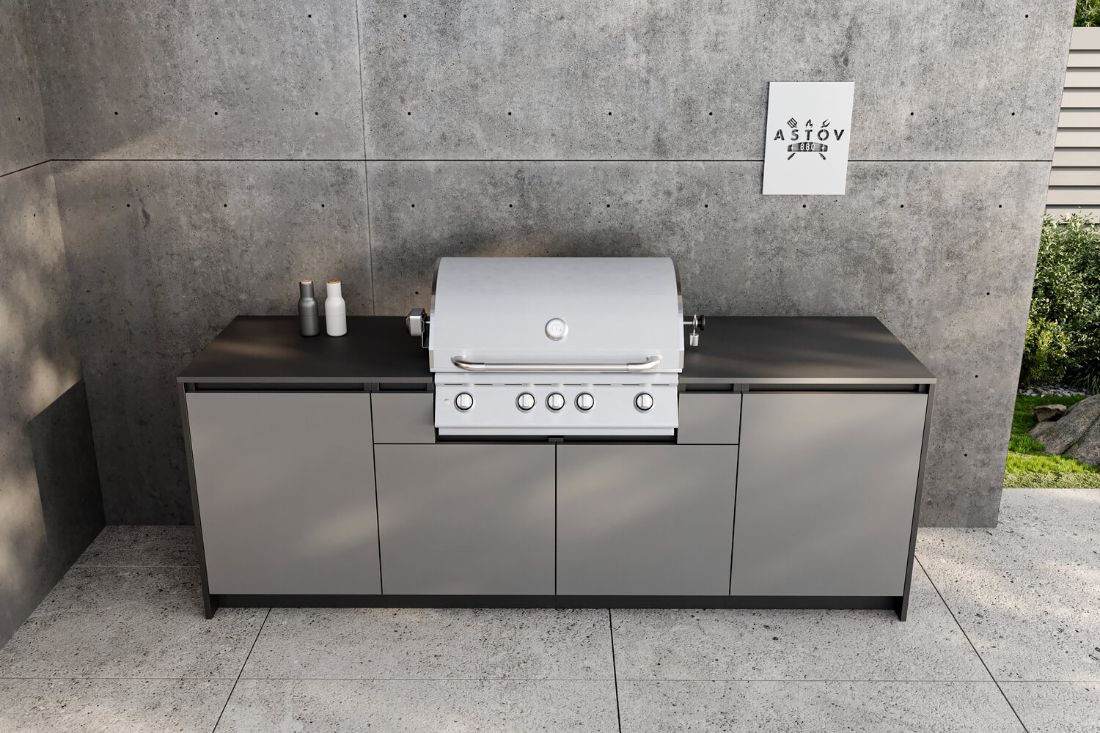 Кухня Astov BBQ из металла очень популярна, потому что она стильная, прочная и легко моется. Металлические поверхности не боятся влаги и не гниют, что делает их хорошим выбором для уличной кухни. Газовый гриль также удобен, так как быстро нагревается и позволяет готовить вкусные блюда на открытом воздухе. С его помощью можно жарить мясо, овощи, рыбу, придавая им особый вкус. Такие кухонные решения идеально подходят кто любит проводить время на свежем воздухе.