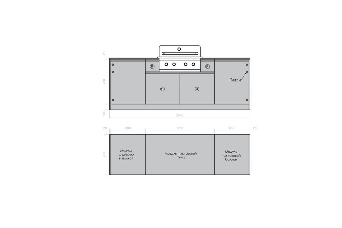 В комплектацию кухни Астов №6 НЕ ВХОДИТ столешница, газовый гриль, газовый баллон. Их можно заказать отдельно.