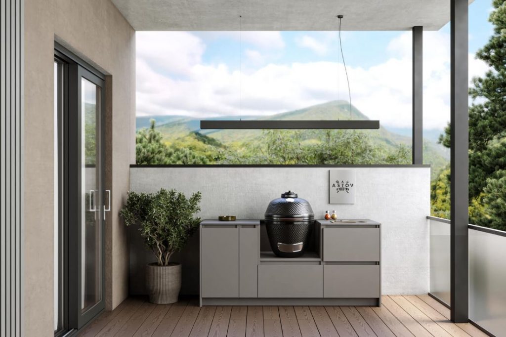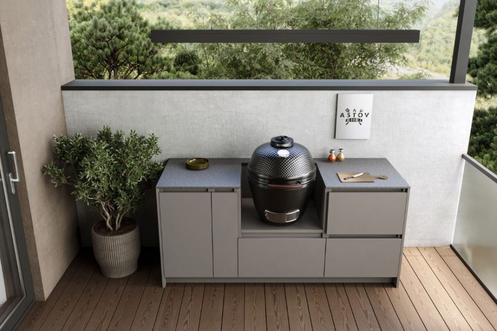 Кухня Astov BBQ из металла стильная и долговечная. Она устойчива к любым погодным условиям. А керамический гриль — отличный выбор для тех, кто любит готовить на улице. Он сохраняет тепло и помогает готовить вкусную еду, различными способами, с особым ароматом.