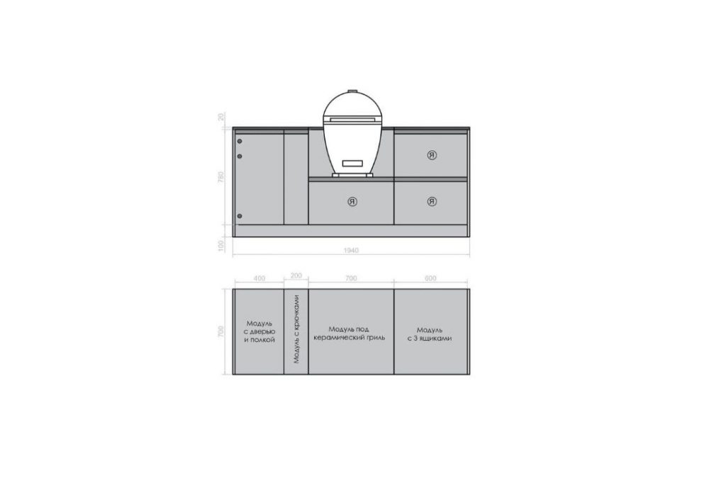 - Модуль для керамического гриля с выдвижным ящиком 700 мм.